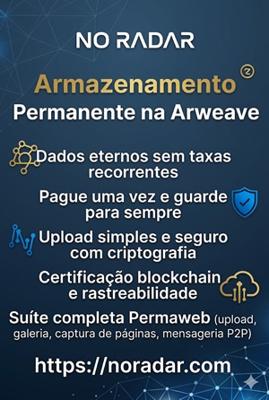 Os conteúdos publicados são públicos por natureza (Permaweb). Para materiais sensíveis, considere versões redigidas ou criptografadas (fora do escopo deste plugin, indicamos www.noradar.com).